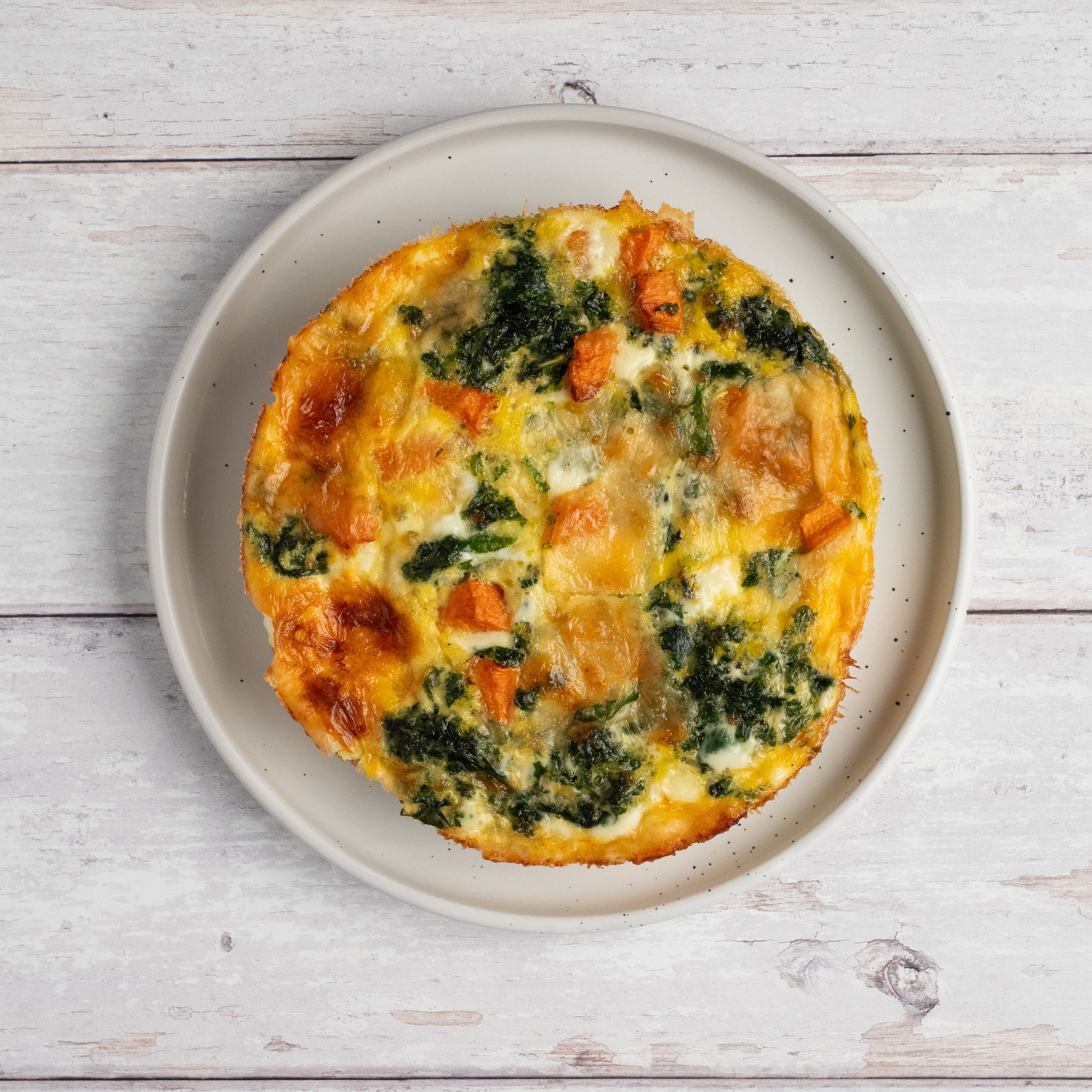 Fresh kale and sweet potato sauteed with a touch of butter and baked into a fluffy frittata. Topped with gruyere and parmesan cheeses.